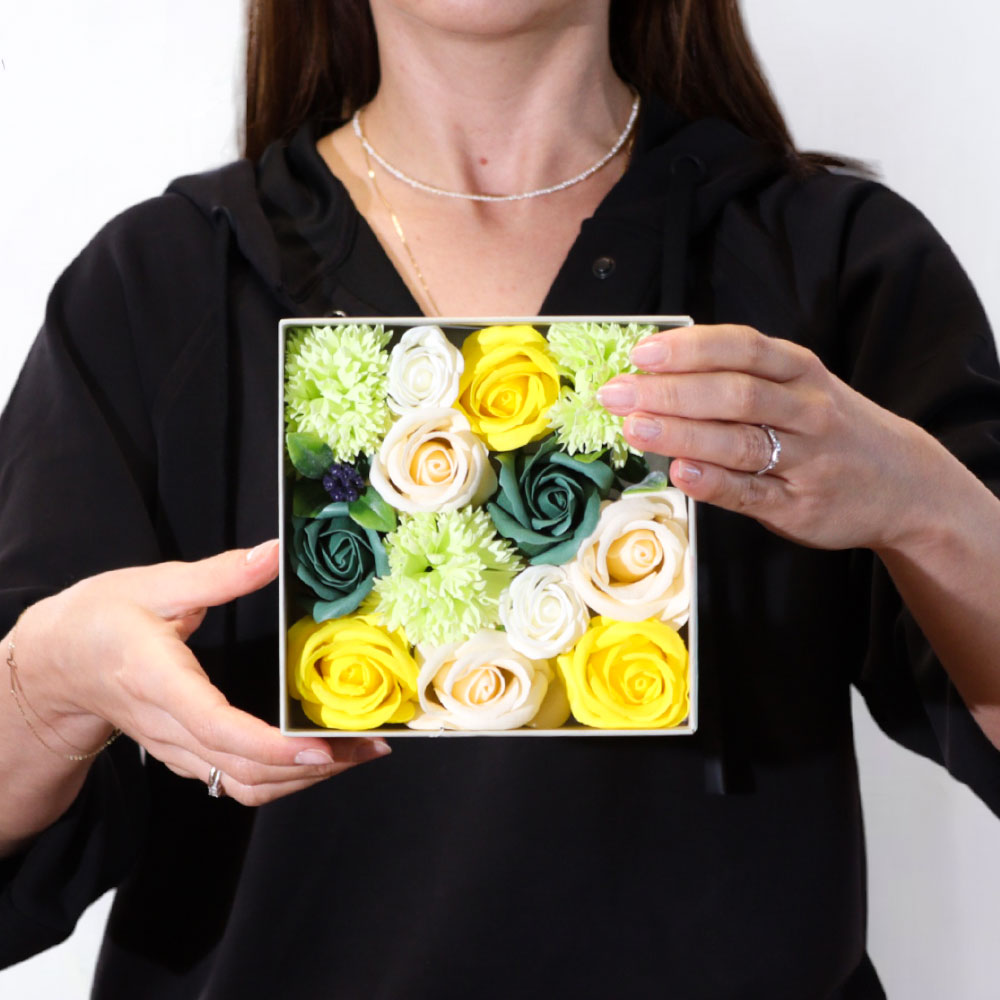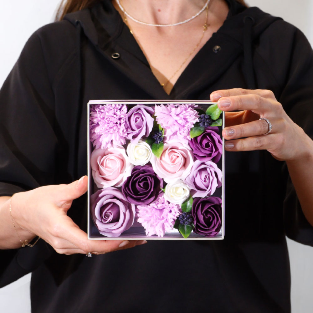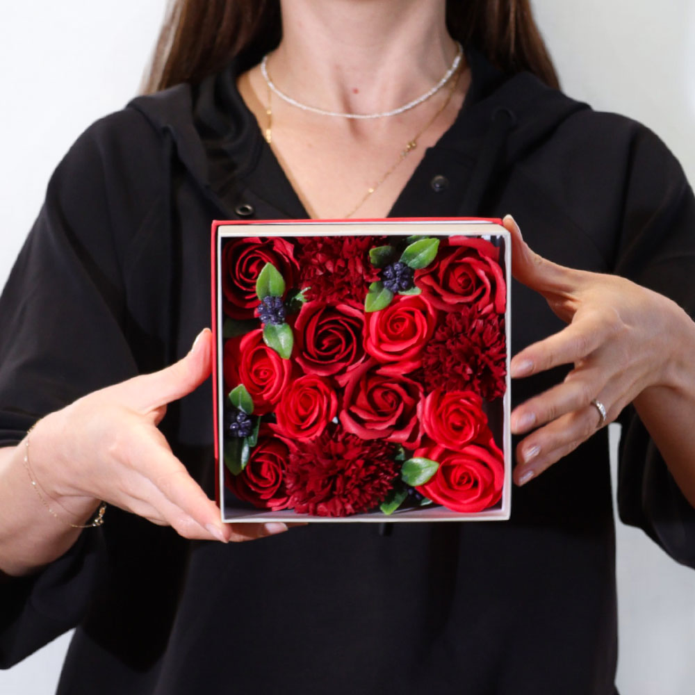 Нашите букети в кутия от сапунени цветя са създадени, за да впечатляват още от първия поглед. Всяка композиция е подбрана с внимание към детайла и поднесена в стилна подаръчна кутия, която може да бъде персонализирана с послание, име, дата или фирмено лого.